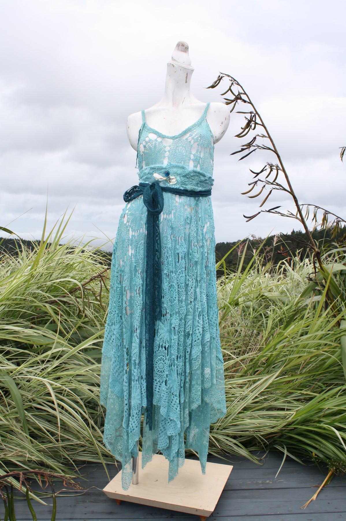 This one-of-a-kind piece of wearable art has been carefully handmade using something old and something new, thoughtfully repurposed through upcycling and zero-waste practices into a fresh, eye-catching dress finished with a unique basque belt. Created from found and foraged materials and individually hand dyed, no two pieces are ever the same, making each garment truly unique. Designed as a one-size style, it floats effortlessly from the armpits to drape beautifully on all bodies, with the belt able to be cinched for shape or worn loose for ease and comfort. Rooted in slow fashion, this timeless piece celebrates creativity, sustainability, and thoughtful craftsmanship. Wear it your way—barefoot on the beach or styled with heels for a special occasion—while supporting handmade design and investing in a meaningful garment to treasure for years to come.