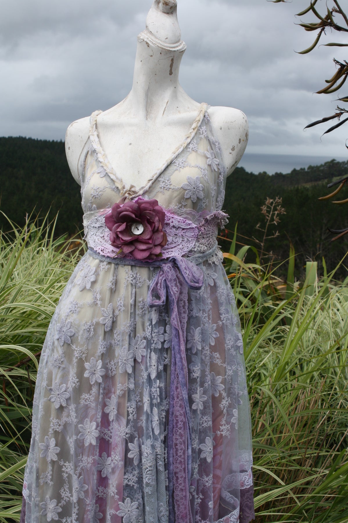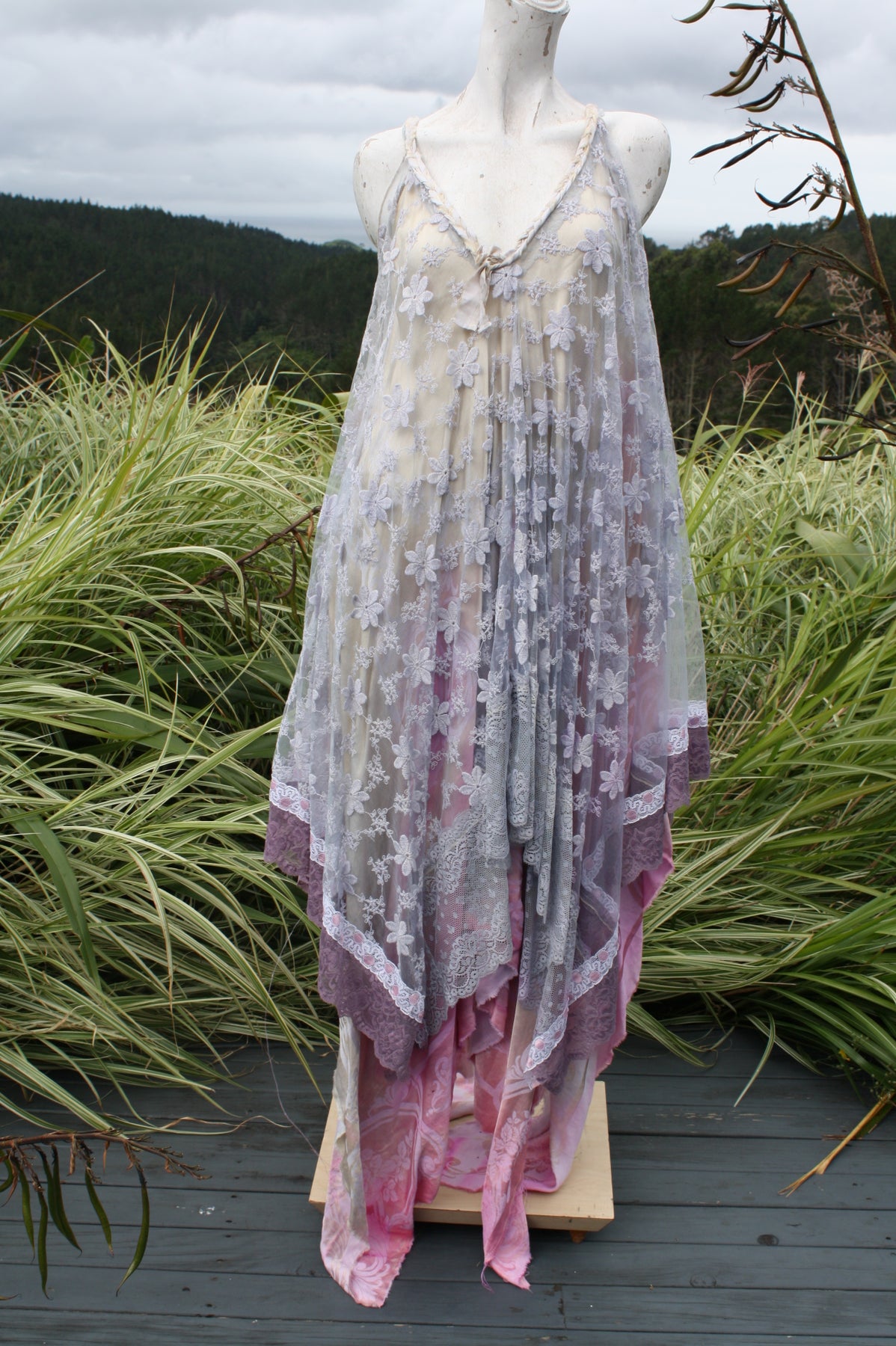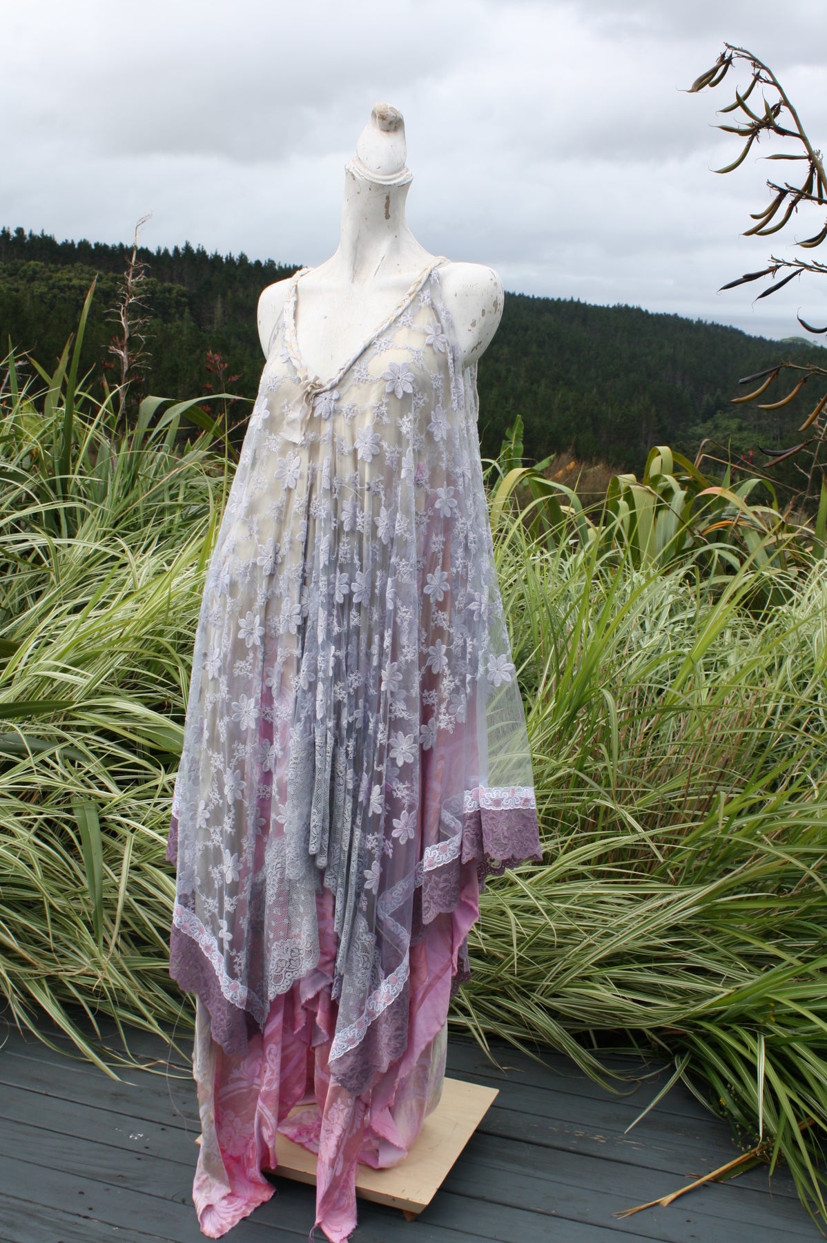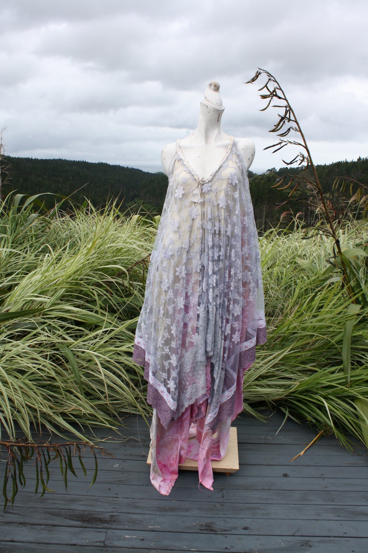 This one-of-a-kind piece of wearable art has been carefully handmade using something old and something new, thoughtfully repurposed through upcycling and zero-waste practices into a fresh, eye-catching dress finished with a unique basque belt. Created from found and foraged materials and individually hand dyed, no two pieces are ever the same, making each garment truly unique. Designed as a one-size style, it floats effortlessly from the armpits to drape beautifully on all bodies, with the belt able to be cinched for shape or worn loose for ease and comfort. Rooted in slow fashion, this timeless piece celebrates creativity, sustainability, and thoughtful craftsmanship. Wear it your way—barefoot on the beach or styled with heels for a special occasion—while supporting handmade design and investing in a meaningful garment to treasure for years to come.